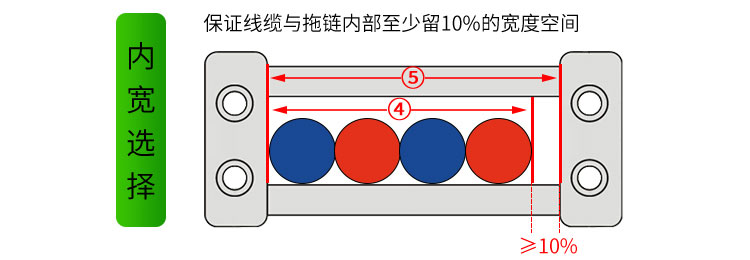 (拖鏈內(nèi)寬④)≥(線纜并列后寬度⑤)*10%